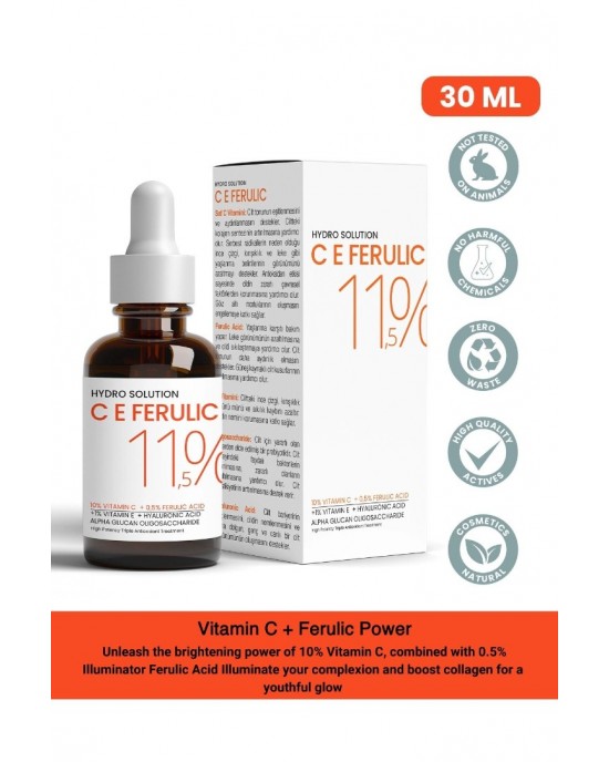 تمتع بفوائد مذهلة مع سيروم هيدرو سيليوشن. يجمع هذا الحل الفعّال في مجال العناية بالبشرة بين قوة 10٪ من فيتامين C النقي للإشراق وتحفيز توليف الكولاجين. حمض الفيروليك يشد البشرة، مما يضفي مظهرًا شابًا. فيتامين E وحمض الهيالورونيك يعملان بشكل تناغم للحماية والترطيب، مع زيادة الفيتامينات والمكملات الغذائية الأخرى. الأوليجوساكاريدات المستخرجة من السكر تساعد في تقليل المواد الضارة في تكوين الجلد، معززة بشرتك بشكل عام. اجعل سيروم هيدرو سيليوشن جزءًا أساسيًا من روتينك اليومي للعناية بالبشرة للحصول على بشرة أكثر إشراقًا ونعومة.